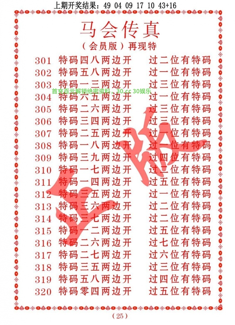 307期:⑨肖中特【兔鸡鼠马猴羊蛇龙】开:狗20中